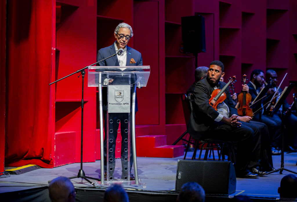 El espectáculo se inició con las palabras de Luis Concepción, presidente de la Promoción Apec (Promapec), entidad que organizó el evento que buscó recaudar recursos económicos para su programa de becas de formación técnica y pasantías para jóvenes y adultos de sectores vulnerables de la fundación Promoción Apec (Promapec).