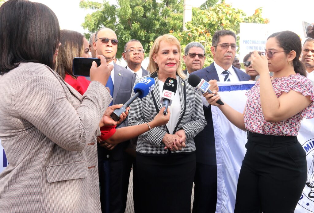 La presidenta del Colegio de Notarios, doctora Laura Sánchez Jiménez, encabezó la marcha de los profesionales del derecho, quienes iniciaron el recorrido en la esquina de las avenidas Jiménez Moya con Correa y Cidrón, en el Centro de los Héroes y concluyeron en el edificio que aloja la Procuraduría.