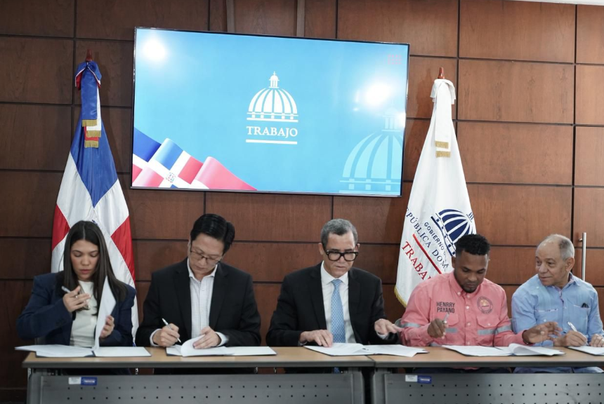 El acto se llevó a cabo en el Ministerio de Trabajo, bajo su mediación, encabezado por su titular, Eddy Olivares Ortega; el presidente de Cormidom, Edward Chong Chi Chien; la directora legal de esta empresa minera, Lauramarie Cornelio, y por el sindicato, su secretario general, Henry Payano, el secretario de organización, Ambiorix Torres de la Cruz, quienes rubricaron el acuerdo junto a Rafael (Pepé) Abreu, presidente de la Confederación Nacional de Unidad Sindical (Cnus).