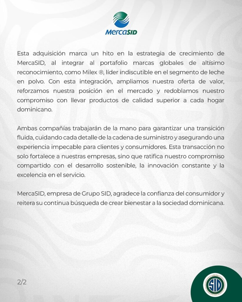 Con esta operación, MercaSID refuerza su posición en el mercado y se consolida como una de las empresas líderes en el sector de productos alimenticios en República Dominicana.