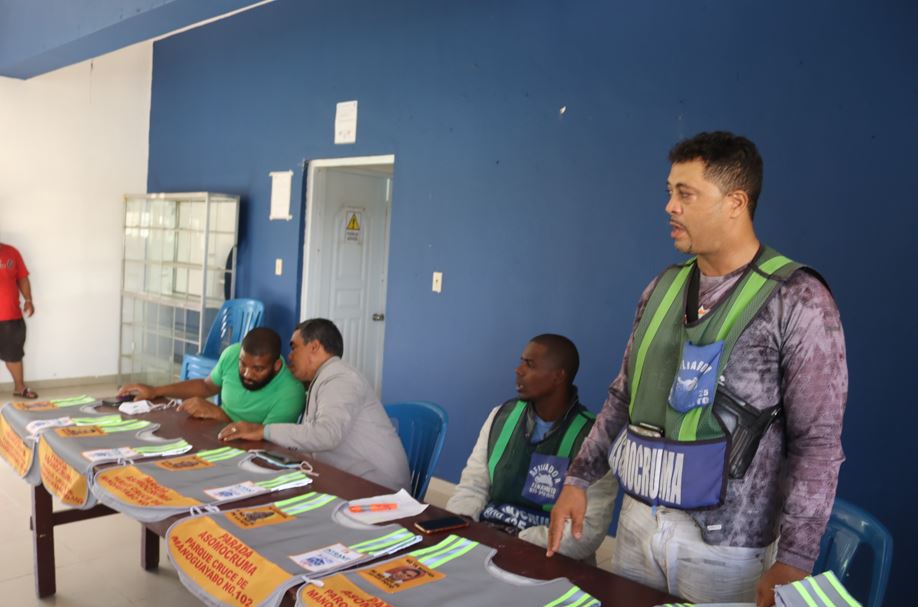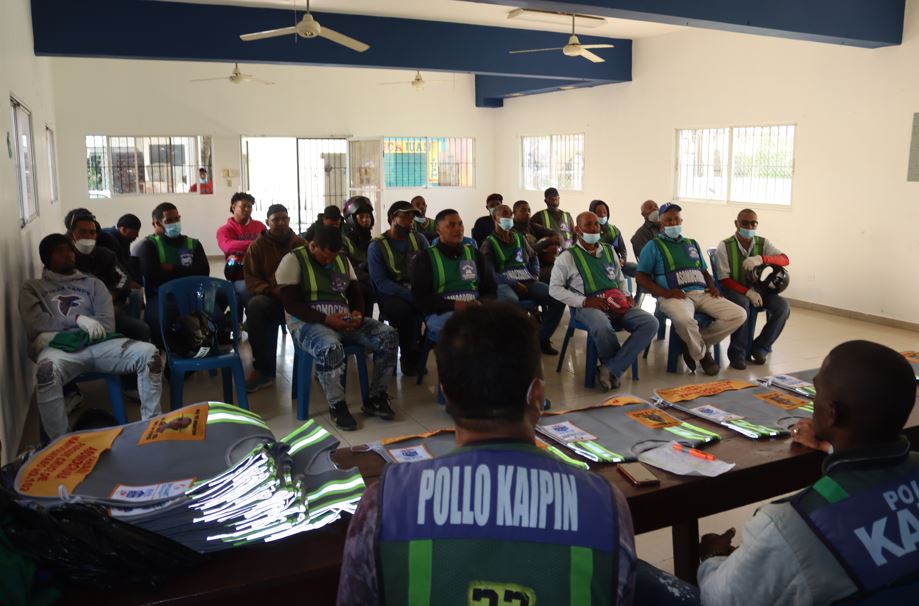 Acto de entrega de chalecos al sector motoconchistas se realizó dentro del Plan de Identificación y Regulación del Sector Mototaxis, que realiza el Departamento de Tránsito de la Acaldía, el Departamento de Motocicletas del Intrant y autoridades municipales.